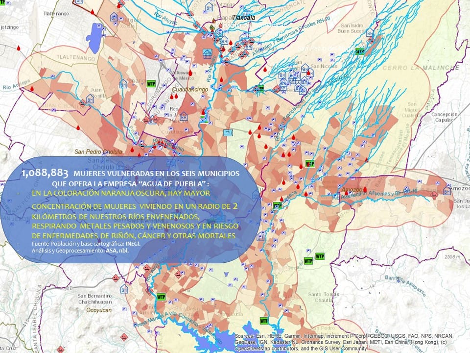 Problemas generalizados en muchas colonias del Municipio de Puebla, como ausencia o deficiencia de agua y tarifas exorbitantes, genera descontento de la población con la empresa Agua de Puebla… Datos: CNA. Mapa: ASA